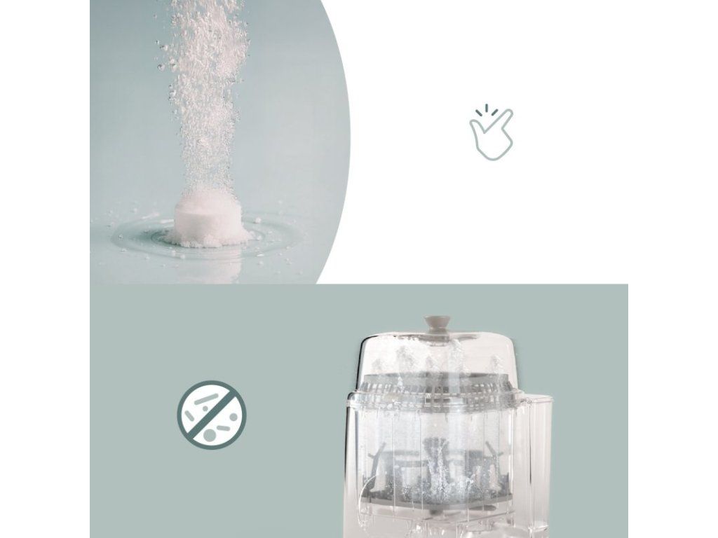 Vložte tabletu do zásobníka spotrebiča a spustite umývací program. S Babymoov NutriWash 4v1 používajte iba jednu tabletu na jeden umývací cyklus.