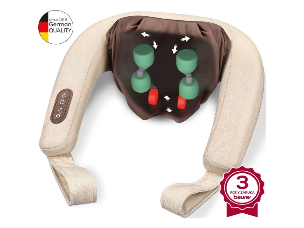 Masážny 4D prístroj na krk BEURER MG153 vám umožní preniesť si masážne štúdio až k vám domov. 4D masážne hlavice, simulujúce ruky, vytvárajú skutočný zážitok z masáže. Voliteľne je možné zapnúť aj funkciu upokojujúceho tepla. Blaženosť po dlhom dni!Charakteristika a technické údaje: Hĺbková masáž na relaxáciu a uvoľnenie svalov 4D masážne hlavice so simuláciou rúk pre skutočný zážitok z masáže S odnímateľným, umývateľným poťahom 4 hnetacie valce a 2 sťahovacie uzly S funkciou tepla 2 úrovne intenzity + 1 masážny režim Otáčanie v smere/proti smeru hodinových ručičiek S odnímateľným, umývateľným poťahom Ľahká aplikácia pomocou ovládacieho prvku na produkte Praktické rukoväte na ovládanie intenzity masáže Automatické vypnutie Prevádzka zo siete: Vstup: 100-240 V; 50/60 Hz; 0,8 A; Výstup: 12 V 2,0 A, 24 W Výkon: 24 W CE: áno Masážne prístroje od nemeckej spoločnosti Beurer nahrádzajú masážne sedenia na podložkách u maséra a umožňujú vám rozmaznávať a ošetrovať sa tam, kde môžete relaxovať najviac - doma. Uvoľnite napätie a doplňte svoju životnú energiu.Klikni video.Dodatočné parametre