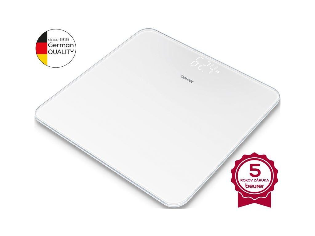 Jedinečná osobná digitálna váha Beurer GS 225 od nemeckej značky Beurer Vám prináša krásny dizajn, štýlový tvar a neviditeľný displej, ktorý sa zobrazuje iba počas merania. S vážiacou plochou z bezpečnostného skla sa nemusíte báť rozbitia. Kapacita až 180 kg a presnosť 100 g potešia všetkých, ktorý chcú mať svoju váhu pod kontrolou.Charakteristika a technické údaje:Neviditeľný displej: zobrazuje sa iba počas meraniaModerný bodový maticový displejMeracia plošina vyrobená z bezpečnostného sklaVeľkosť číslice: 27 mmZmena na kg / lb / stKapacita: 180 kgPresnosť: 100 gIndikácia preťaženiaAutomatické zapnutie a vypnutieRozmery produktu 30 x 30 x 2,4 cmKu komfortnému používaniu určite prispievajú aj veľké číslice s veľkosťou až 27 mm a moderný bodový maticový displej pre lepšiu viditeľnosť. Automatické vypnutie je u váh Beurer samozrejmosťou.Dodatočné parametre