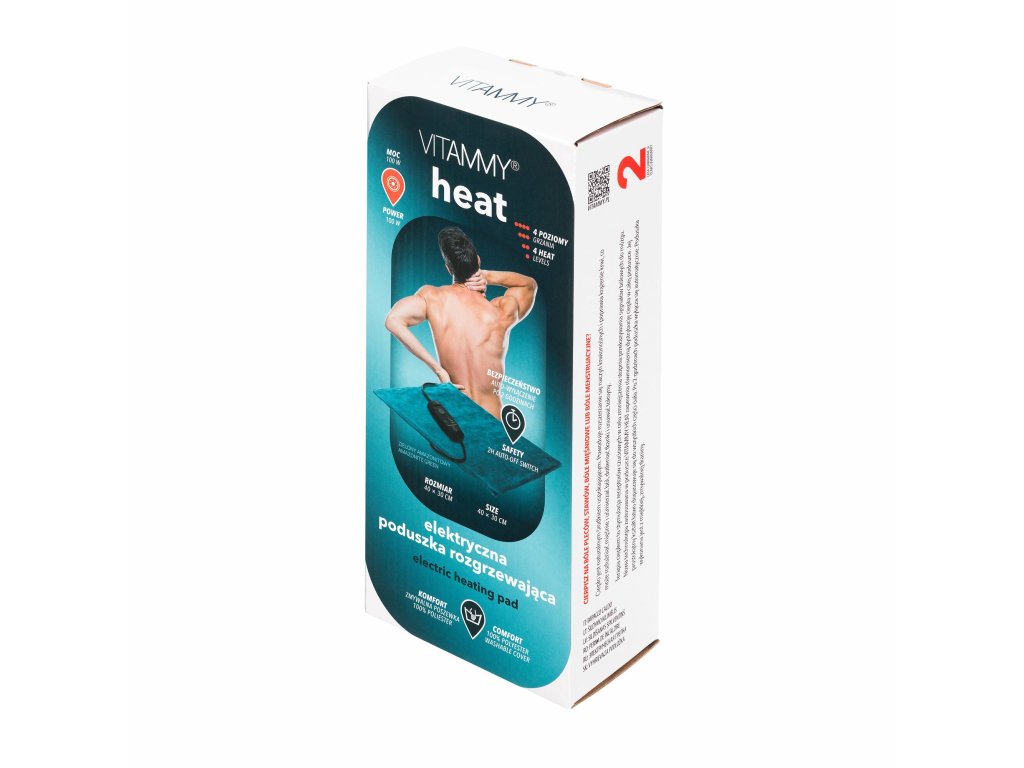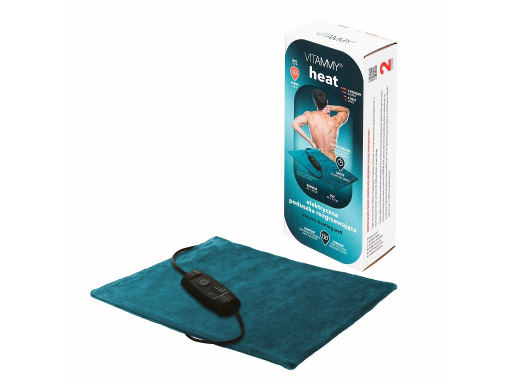 VITAMMY HEAT Elektrická vyhrievacia poduška je účinný, bezpečný a komfortný prostriedok na prehriatie a úľavu od bolesti. Vďaka rovnomernému rozloženiu tepla, možnosti nastavenia intenzity, automatickému vypnutiu a ľahko udržiavateľnému materiálu je táto elektrická vyhrievacia dečka ideálnym spoločníkom pre každodennú pohodu a relaxáciu.