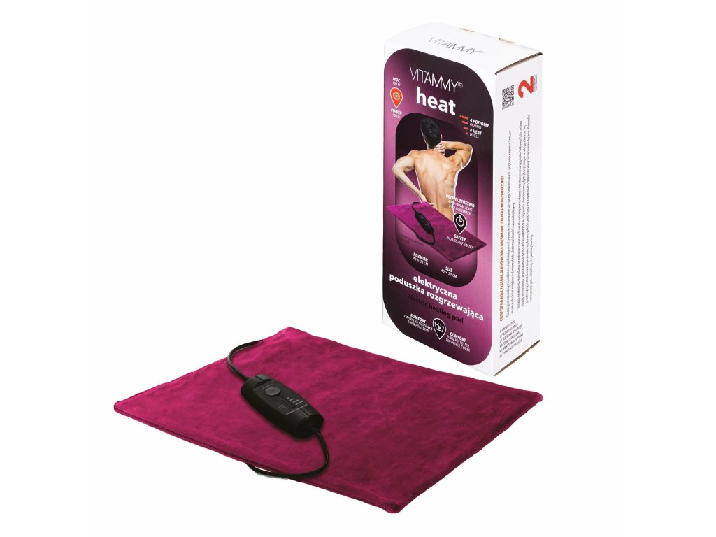 VITAMMY HEAT Elektrická vyhrievacia poduška je účinný, bezpečný a komfortný prostriedok na prehriatie a úľavu od bolesti. Vďaka rovnomernému rozloženiu tepla, možnosti nastavenia intenzity, automatickému vypnutiu a ľahko udržiavateľnému materiálu je táto elektrická vyhrievacia dečka ideálnym spoločníkom pre každodennú pohodu a relaxáciu.