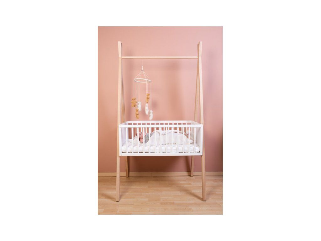Originálna drevená postieľka pre bábätko od narodenia do cca 6 mesiacov sa ľahko premení na praktický stojan na oblečenie, ktorý môže byť súčasťou detskej izby až do dospelosti. Vďaka krásnemu drevenému prevedeniu bude postieľka aj stojan na oblečenie s dvoma policami a tyčou na zavesenie oblečenia na ramienkach krásnym doplnkom detskej izby.
