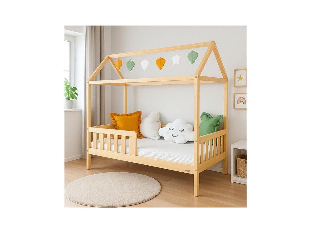 Detská posteľ domček so zábradlím a roštom New Baby CASTELLO 160x80 cm prírodná - 58049