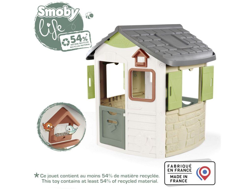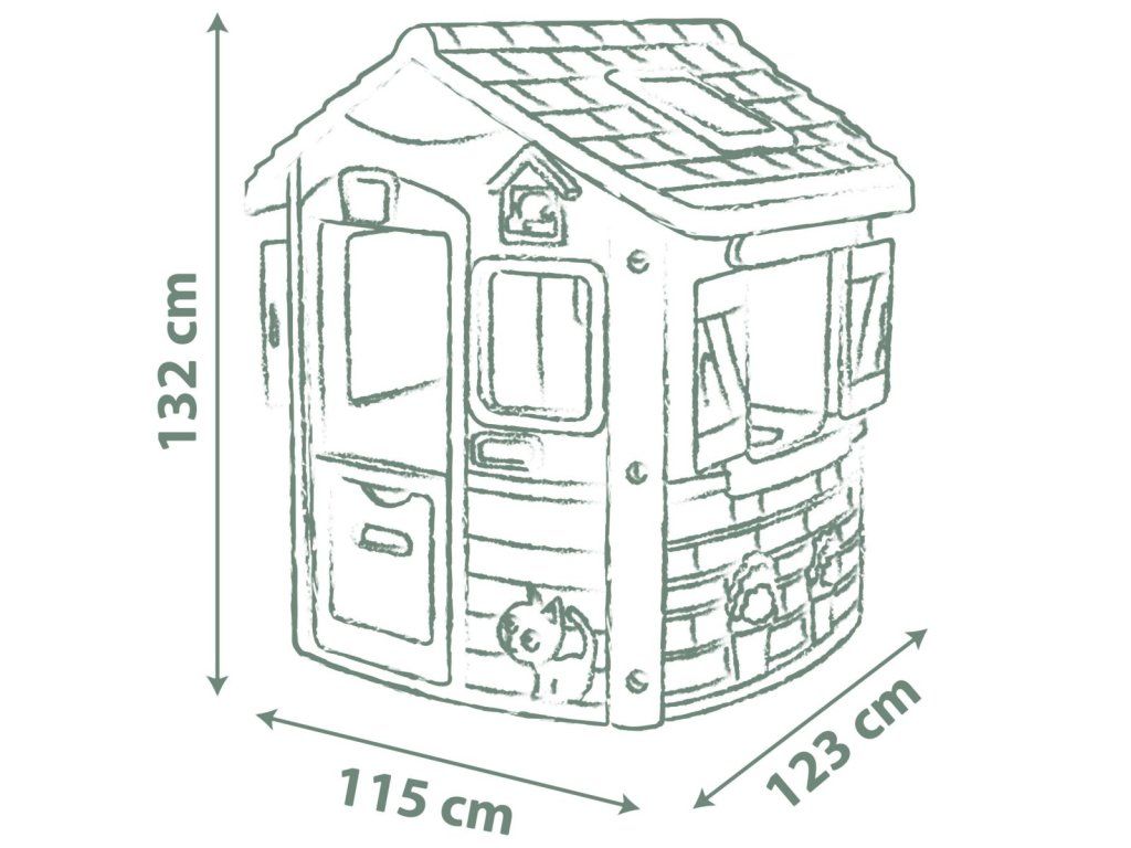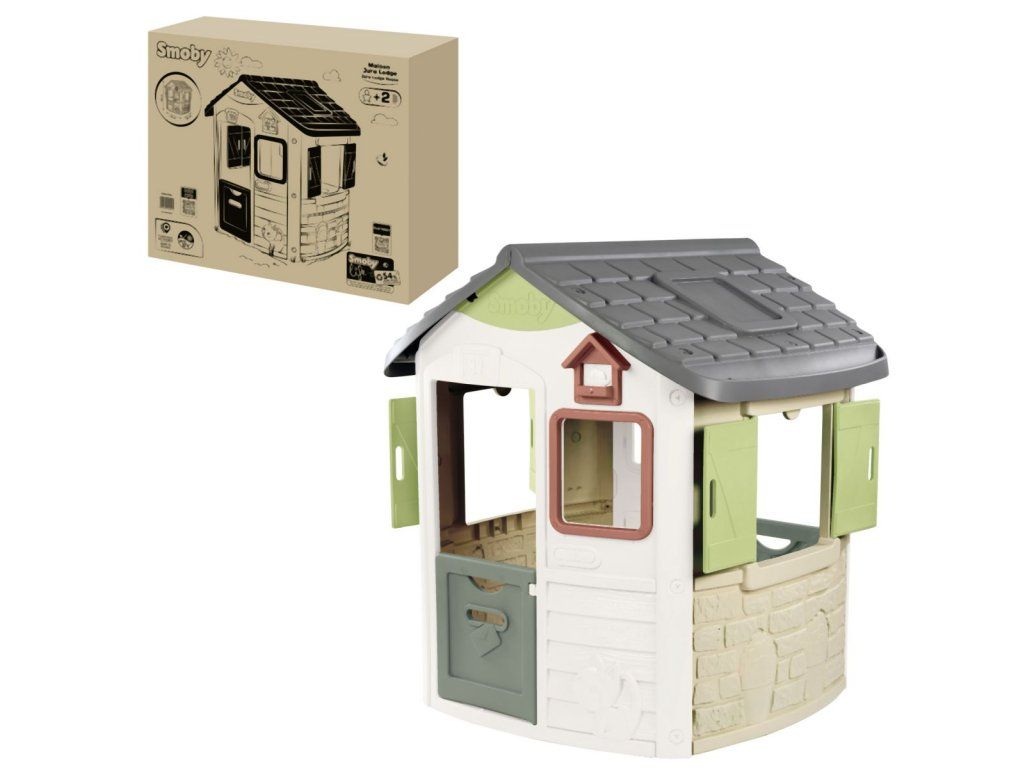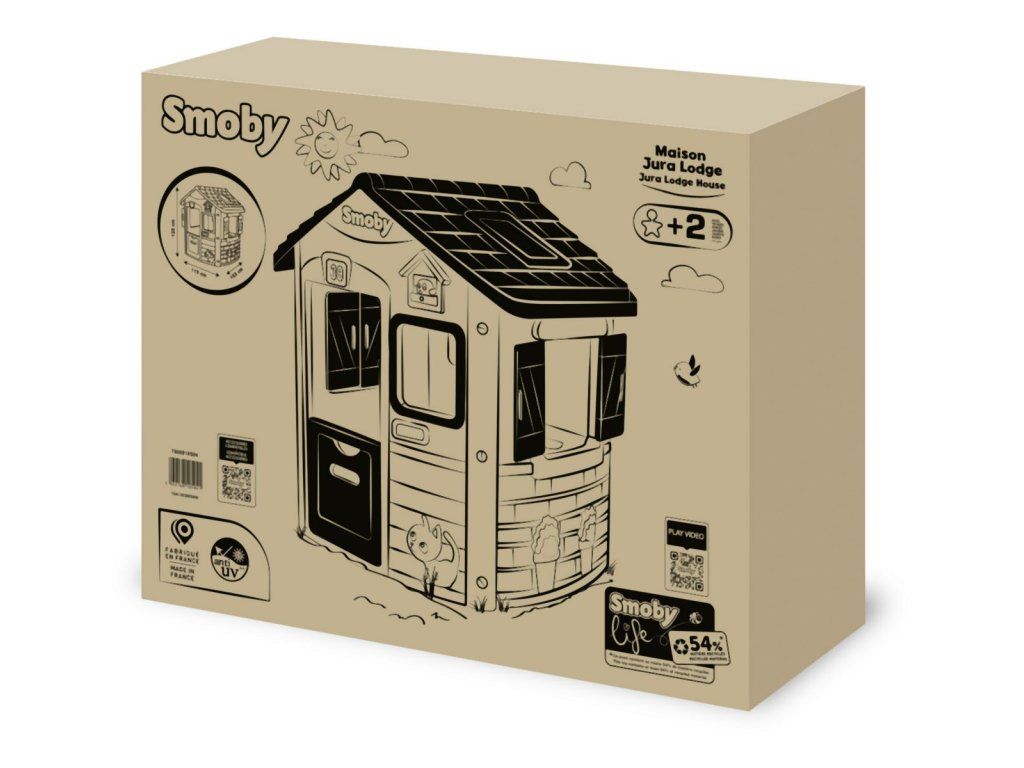 Stabilný, priestranný domček Smoby Life Jura Lodge. S dvoma vstupnými dverami (vpredu/vzadu), 2 oknami s okenicami a jedno krmítko pre vtáčiky. Jednoduchá montáž. Domček je vyrobený z vysoko kvalitného plastu odolného voči UV žiareniu a je obzvlášť odolný voči poveternostným vplyvom a vyblednutiu. Tento výrobok obsahuje minimálne 54 % recyklovaného materiálu a je 100 % recyklovateľný. Tento dom bol špeciálne navrhnutý tak, aby bolo možné pridať príslušenstvo podľa vlastného výberu: letná kuchyňa, piknikový stôl, slnečník a ďalšie. Rozmery výrobku (DxŠxV): 115 x 123 x 132 cm.Dodatočné parametre