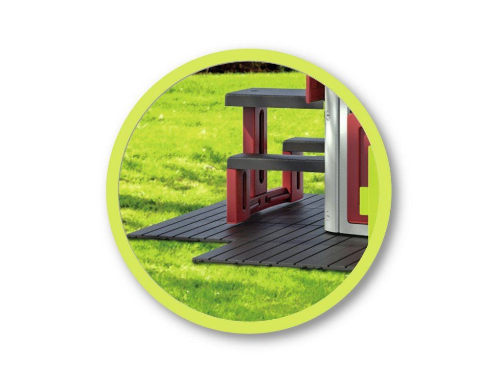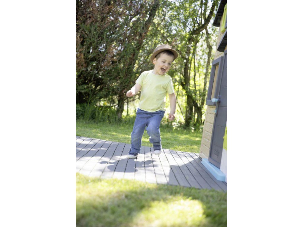 Súprava podlahových dosiek z vysoko kvalitného 100% recyklovateľného plastu s protišmykovou a UV ochranou. Ideálne ako základňa pre všetky domčeky. Dosky sú s jednoduchým systémom kliknutia. Súprava obsahuje 6 ks panelov s rozmermi 45 cm x x45 cm, celková plocha 1,20 m2. Podľa potreby môže byť rozšírené o ďalšie sady, napr. možno vytvoriť terasu alebo cestu. Vhodné ako základňa pre všetky domčeky Smoby a tiež pre všetky ostatné značky. Rozmery dosky (DxŠxV): 45 x 45 x 1,5 cm.Dodatočné parametre