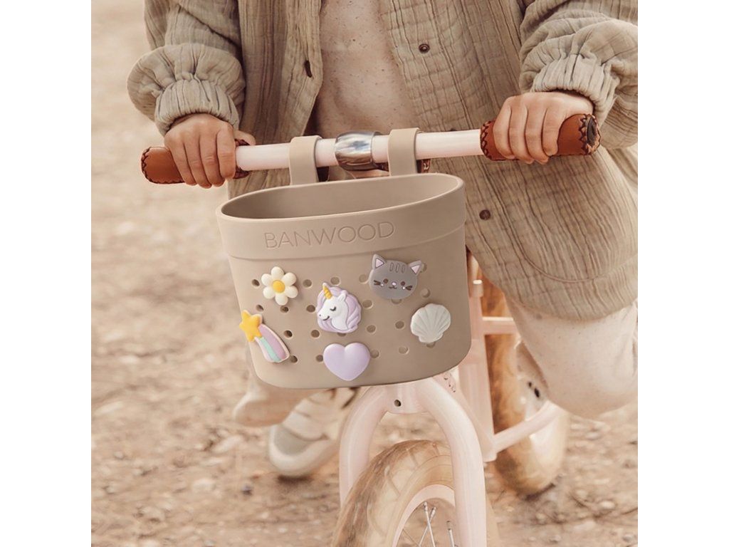 Košík, ktorý si môžete prispôsobiť. Víziou Banwood je pozitívne ovplyvňovať aktívny životný štýl detí od útleho veku. Banwood ponúka štýlové produkty v nadčasovom minimalistickom dizajne a vysokej kvalite, ktoré pomáhajú rozvíjať osobnosť detí a vytvárať spomienky na detstvo plné radosti. Milujeme spôsob, akým sa deti hrajú! Nadčasový škandinávsky dizajn v klasickom “vintage” štýle, bez kompromisov na kvalite a bezpečnosti. Banwood košík Pin & Ride je vyrobený z recyklovanej gumy v niekoľkých jednofarebných zemitých tónoch. Je ideálny na prenášanie obľúbených vecí, od malých hračiek až po vzácne poklady, ktoré deti nájdu po ceste. Ľahko sa pripevňuje a je navrhnutý tak, aby sa hodil na všetky produkty Banwood, ako aj na väčšinu iných bicyklov a kolobežiek. Košík Pin & Ride si deti vedia ozdobiť ozdobami Banwood. Ozdoby Banwood sa predávajú samostatne. Vyrobené z recyklovanej, odolnej gumy. Flexibilné popruhy z recyklovanej gumy. Jednoduché pripevnenie na riadidlá bez použitia náradia. Vhodné pre všetky Banwood produkty, ako aj pre väčšinu iných bicyklov a kolobežiek. Rozmery: 17,8 × 10,6 cm (výška 13,8 cm)Dodatočné parametre