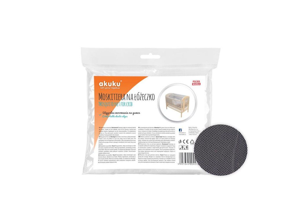 Univerzálna moskytiéra Akuku na detskú postieľku. Vďaka svojim univerzálnym rozmerom a sťahovacej gumičke sedí ku každej postieľke. Dokonalé chráni Vaše dieťa pred hmyzom a zaručuje pokojný spánok. Rozmery: 120x60 cm. Zloženie: 100% polyester.Dodatočné parametre