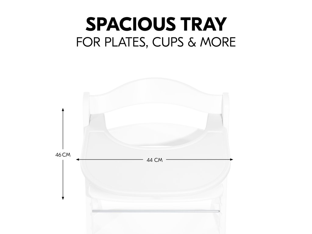 PRIESTRANNÝ PULT PRE VAŠE DIEŤA NA JEDENIE A HRY // Podnos ponúka dostatok priestoru na taniere, poháre a hračky. Vaše dieťa sa tak môže pohodlne hrať a jesť, zatiaľ čo vy sa venujete drobným činnostiam.