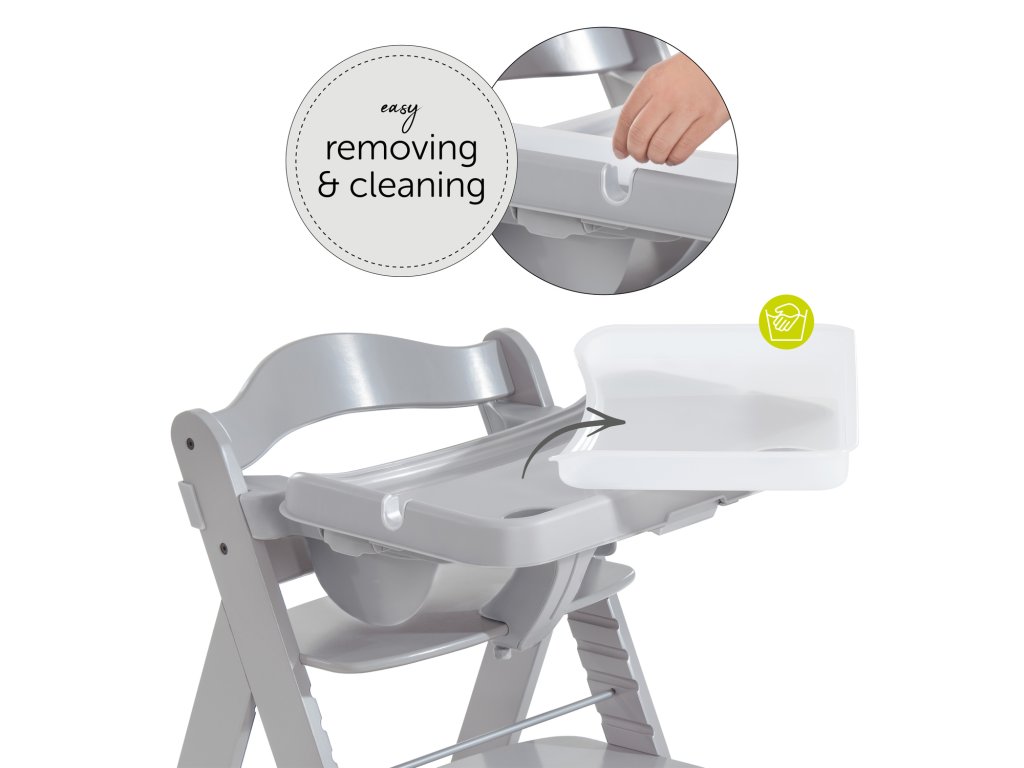 Odnímateľná tácka // Ak pri jedle niečo spadne vedľa, má pultík odnímateľnú hornú časť - tácku, ktorá sa ľahko odníme a vyčistí. Vaše dieťa tak môže svoj stolček jednoducho používať ďalej.