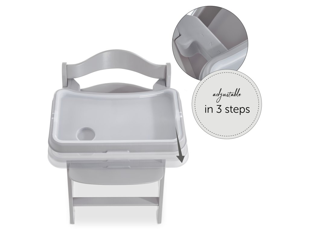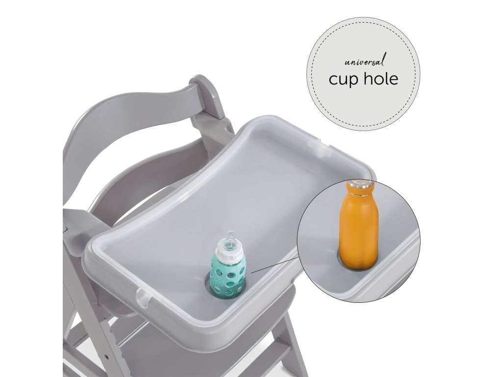 Na pultíku Alpha+ môže Váš maličký nerušene objavovať svet stolovania, nehľadiac na to, či sa niečo rozleje alebo spadne mimo tanierik. Vyvýšený okraj a priehlbina na hrnček zadržia nečistoty tak, aby hneď všetko neskončilo na podlahe. Tácku aj jedálenský pultík je možné ľubovoľne odňať.