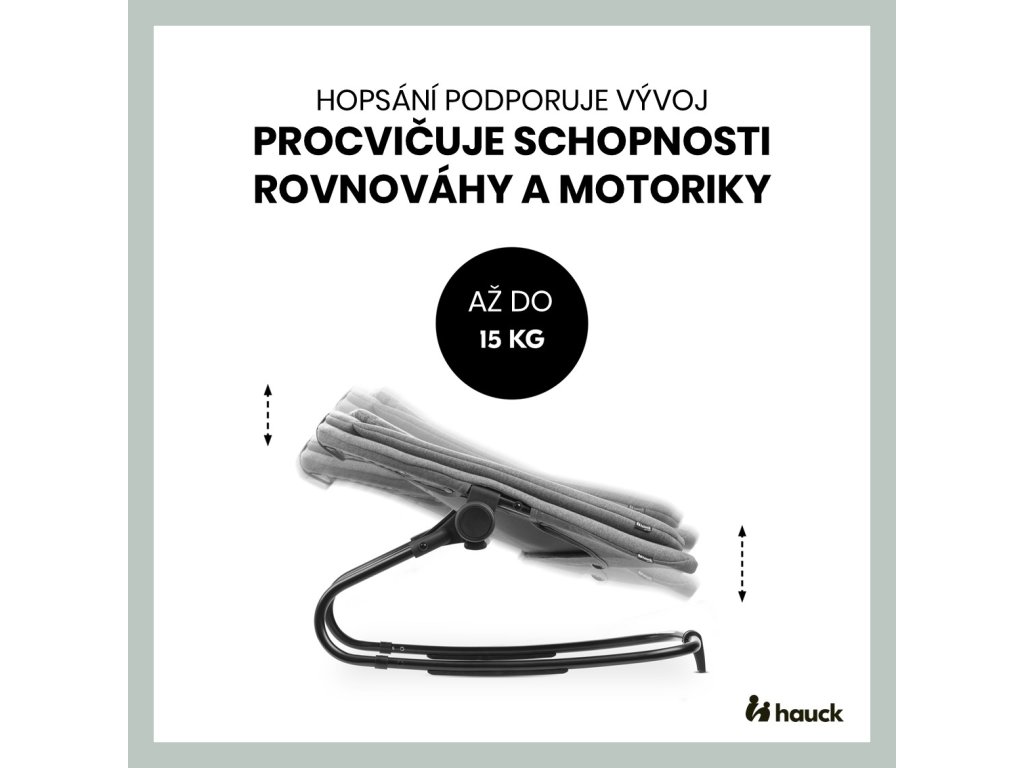 „Hopsanie“ pomáha rozvoju! Vaše dieťa si precvičuje rovnováhu a motorické schopnosti. Môže hopsať, kolísať sa a odpočívať v kresielku až do 15 kg, alebo do 9 kg pri použití ako novorodenecký nadstavec na drevenú stoličku.