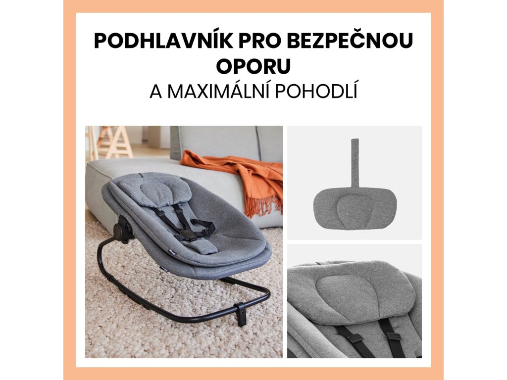 Hlavička dieťatka potrebuje dobrú oporu. Kresielko BOUNCER 3v1 je na tento účel vybavené prídavným podhlavníkom. Hlavička vášho dieťatka má dodatočnú oporu a je neustále chránená.