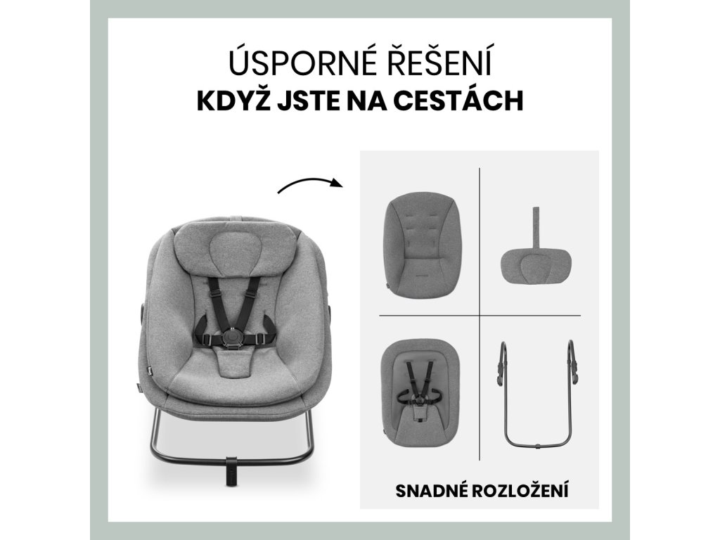 JEDNODUCHÉ ROZLOŽENIE NA CESTU // Chcete si svoje kresielko vziať so sebou? Nie je problém. Kresielko je možné jednoducho rozložiť – po odobratí hornej časti môžete kresielko zložiť do kompaktných rozmerov – ideálne k babičke či na dovolenku.