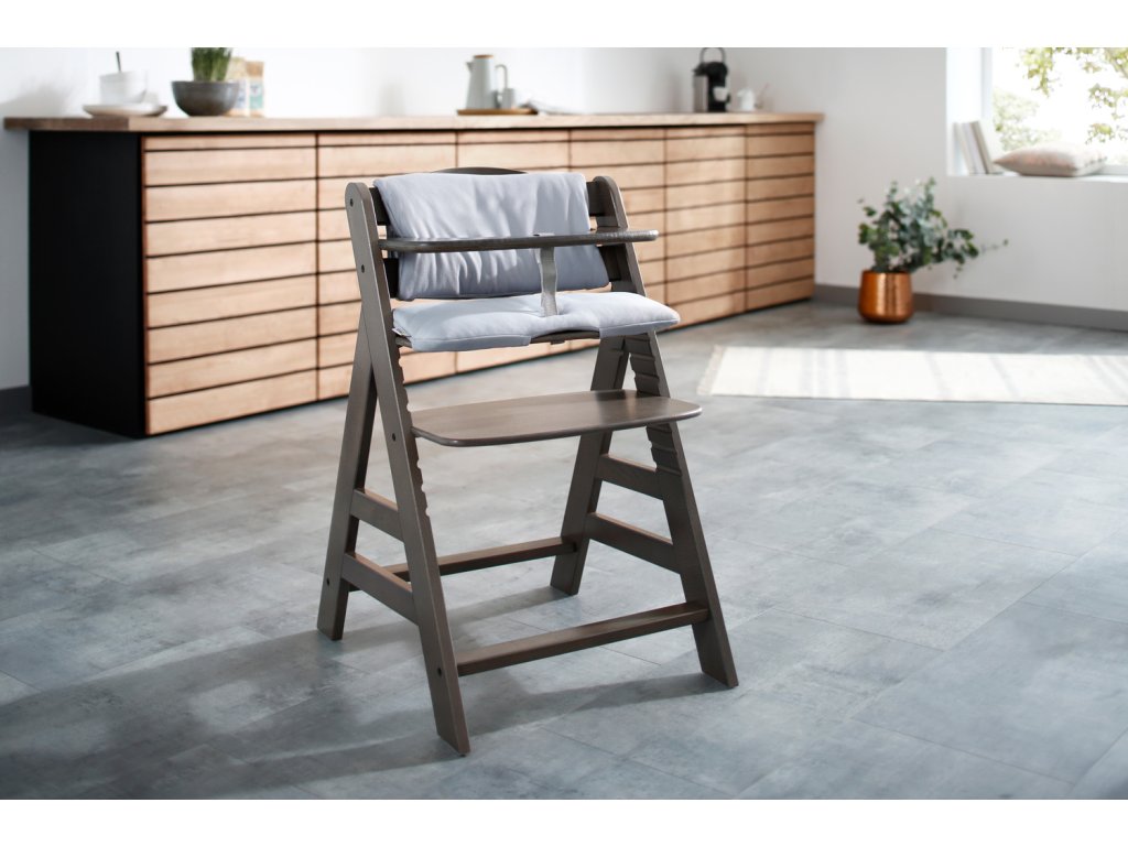 Polstrovanie sedadlá a chrbta je vybavené vysoko kvalitnou výplňou, čím zaručí optimálny komfort. Sedí celkom presne a upevní sa na detské jedálenské stoličke pomocou suchých zipsov, prípadne sa rovnako jednoducho odníme pre potreby vypranie.