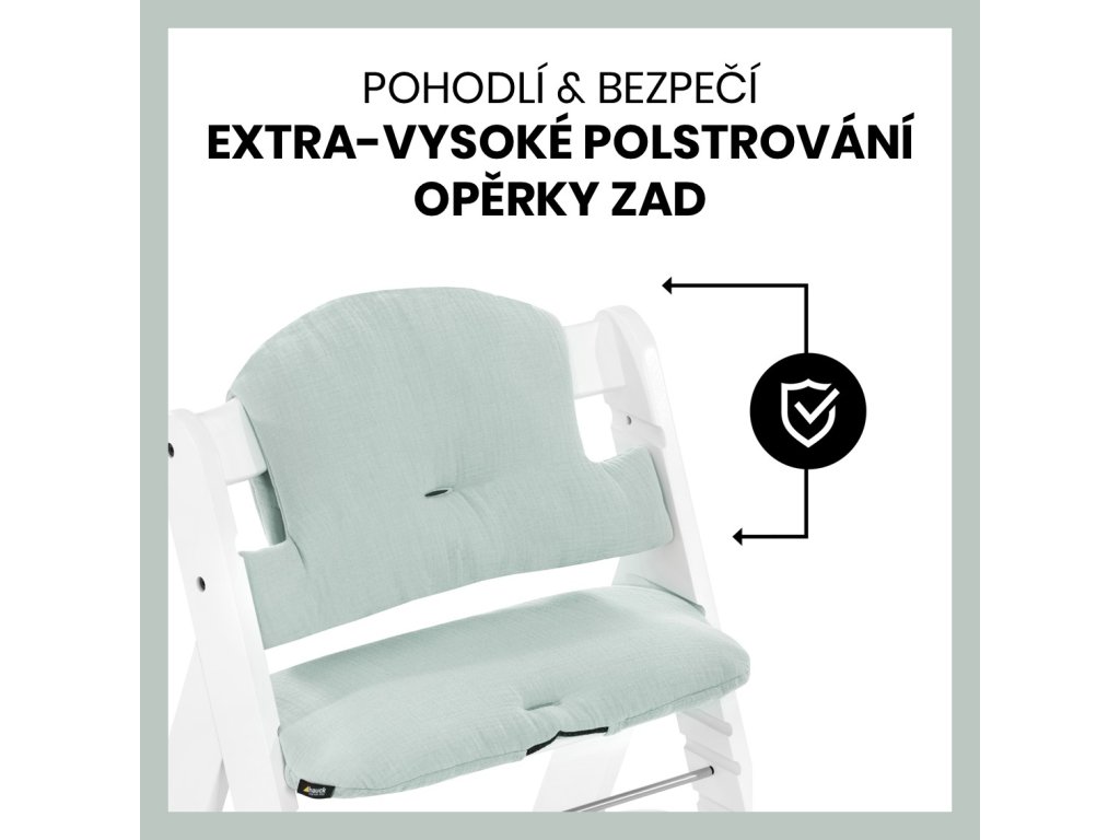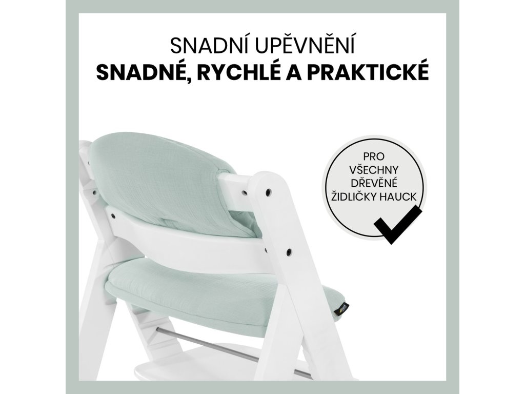 Naozajstné pohodlie vďaka dvojitému polstrovaniu - Hľadáte mimoriadne pohodlnú súpravu polstrovania pre vysokú drevenú stoličku vášho dieťaťa? Polstrovanie Select sa perfektne hodí na drevené detské stoličky hauck Alpha+, Beta+ a Arketa. A vďaka dvojitému polstrovaniu opierky chrbta bude mať vaše dieťa pri jedle a hraní mimoriadne pohodlie.