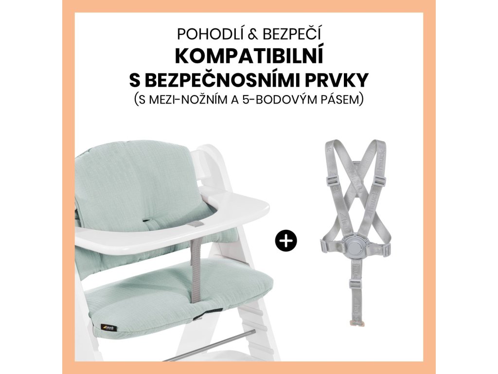 SEDADLO JE KOMPATIBILNÉ S MEDZI-NOŽNÝM A 5-BODOVÝM BEZPEČNOSTNÝM PÁSOM // Všetky drevené stoličky hauck sú vybavené rozkrokovým a päťbodovým bezpečnostným pásom. Polstrovanie je plne kompatibilné s týmito bezpečnostnými prvkami tak, aby vaše dieťatko mohlo byť vždy v pohodlí a bezpečí – v každom veku!