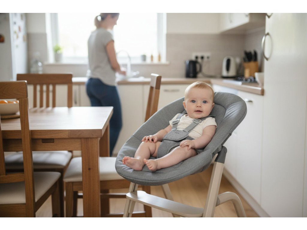 Novorodenecký set je výborným pomocníkom v období, keď bábätko ešte nesedí samé, ale rado sleduje dianie okolo seba. Umožňuje vám zapojiť dieťa do každodenných činností – bezpečne, pohodlne a na úrovni jedálenského stola. (Pri použití na stoličke Inspira.)