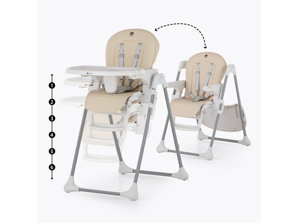 Starostlivosť o životné prostredie, ktorú sme pri tvorbe tejto stoličky zohľadnili, nezatienila najdôležitejšie aspekty výrobku - bol totiž navrhnutý tak, aby čo najbezpečnejšie zlepšil každodenný život dieťatka aj rodičov. Stolička má všetky funkcie, ktoré uľahčujú každodenné kŕmenie: Je možné ju ľahko zložiť a vyčistiť, má 5-bodové bezpečnostné pásy, nastaviteľnú opierku chrbta, nastaviteľnú opierku nôh, nastaviteľnú výšku, dve polohy pre podnos s hornou časťou, ktorú možno umývať v umývačke riadu. Stabilná konštrukcia stoličky zaistí bezpečnosť vášho dieťaťa bez ohľadu na to, aké je aktívne alebo pohyblivé. Vysokokvalitné vyhotovenie, premyslená konštrukcia, moderný a originálny dizajn a kompaktné skladanie sú nadčasové vlastnosti, ktoré zabezpečia pohodlie pre vaše dieťa od okamihu, keď sa naučí sedieť.