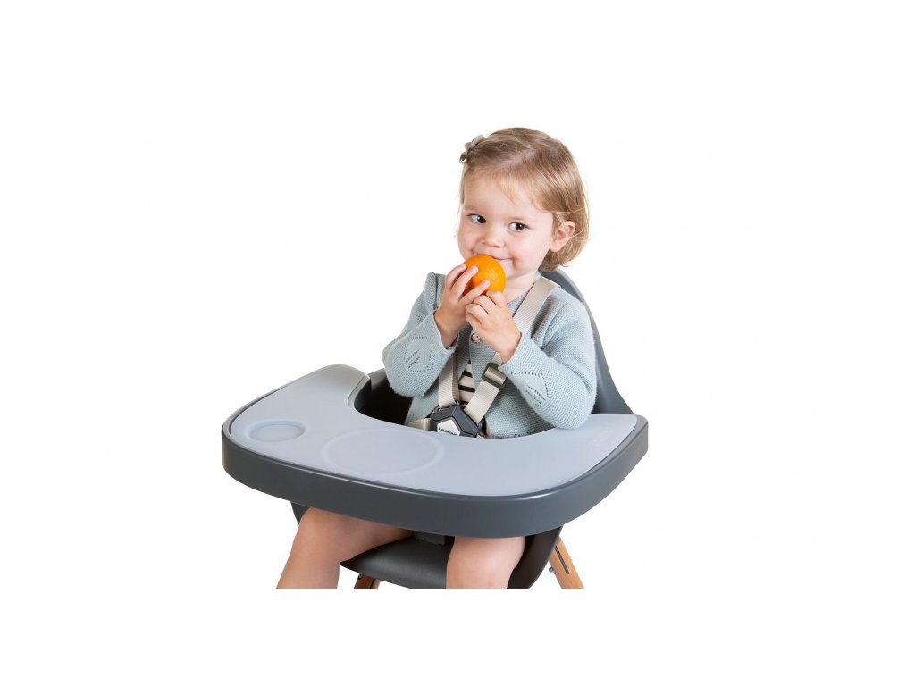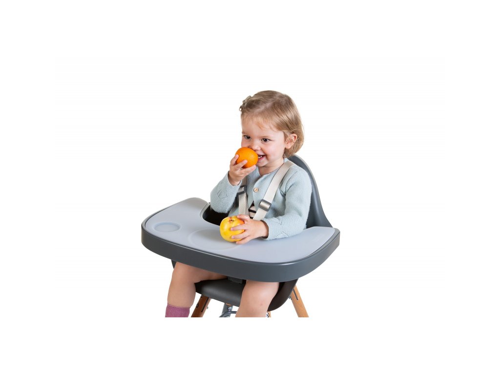 Jedálenský pult k stoličke Childhome Evola 2 alebo Evola ONE.80 ° je vyrobený z materiálu ABS. Ľahko sa nasadí na opierku rúk stoličky. Súčasťou jedálneho pultu je odnímateľné silikónové prestieranie, ktoré vám uľahčí údržbu pultu po jedle. Prestieranie stačí utrieť alebo pri väčšom znečistení umyť v umývačke.