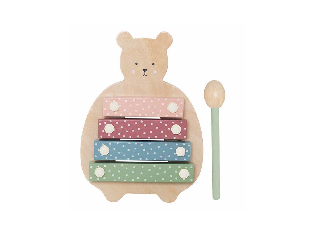 Xylofón je zábavný hudobný nástroj, ktorý vyhovuje aj tým najmenším deťom. Prebuďte v dieťati hudobný záujem. Xylofón má 4 zvukové dosky v rôznych farbách a sprievodnú paličku. Xylofón je vyrobený z dreva, ktoré produkuje jemnejší zvuk ako klasický kov. Xylofón má tiež roztomilý tvar medvedíka pre väčšiu radosť.Farba: Multi