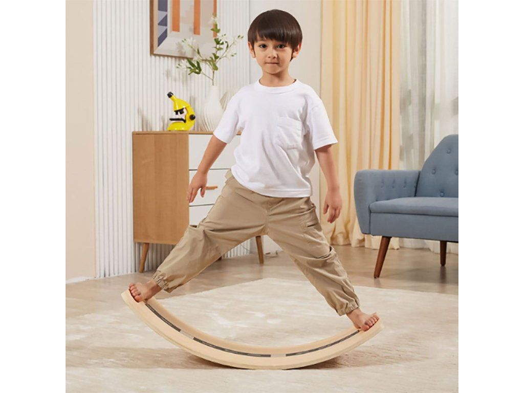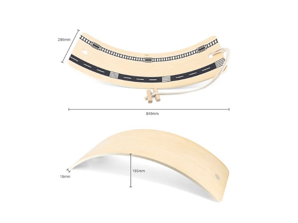Multifunkčná balančná doska pomáha: rozvíjať rovnováhu, stimulovať vestibulárny systém, fyzicky posilňovať telo a uvedomovať si pohyblivosť vlastného tela. Vďaka ťahaciemu lanu môže dieťa sedieť ako na skateboarde a nechať sa ťahať. Možnosti využitia dosky sú prakticky neobmedzené. Možno ju použiť ako: hojdačku, pretekársku dráhu, surf, hojdacieho koníka, postieľku, mostík, šmýkačku atď. Dieťa využije svoju fantáziu a objaví ďalšie kreatívne spôsoby hry. Aby bola hra zaujímavejšia, k doske sú priložené 3 samolepkové pásiky s týmito obrázkami: cesta, dráha a parkovisko.