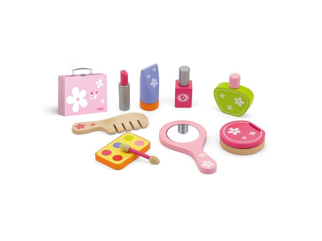 Kozmetická taštička s doplnkami na líčenie je ideálnou hračkou pre malé princezné. Ktorá si už neraz požičala od mamičky lesk na pery alebo očné tiene, nalakovala si nechty... Všetky malé dievčatká, ktoré pozorujú svoju mamu, tetu, babičku, sa tiež chcú nalíčiť.
