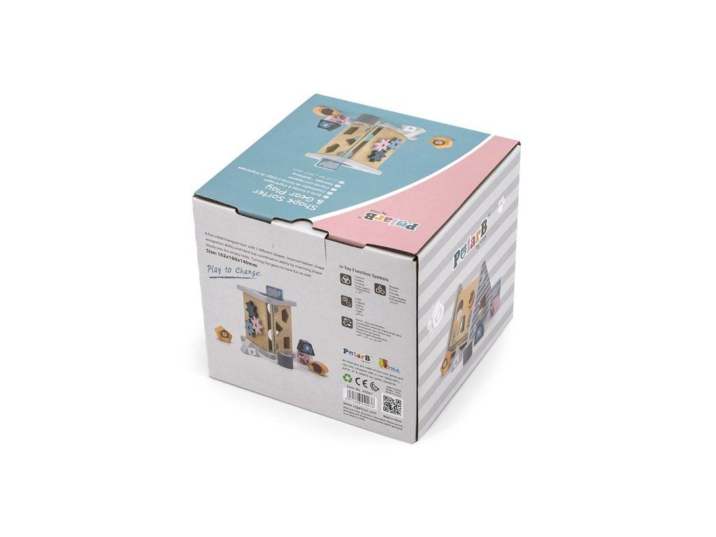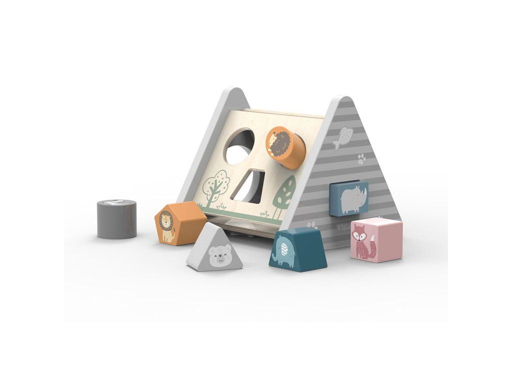 Vzdelávacia skladačka Pyramída od spoločnosti VIGA je ideálnym darčekom pre každé dieťa. Vzdelávacia skladačka sa osvedčí ako pomôcka pri rozvoji motoriky a koordinácie ruka-oko u batoliat. Okrem toho učí rozpoznávaniu farieb a tvarov. Úlohou dieťaťa je priradiť tvary kociek k farebným zvieracím postavičkám a vložiť ich do príslušných otvorov tak, aby prešli na druhú stranu piatich drevených strán skladačky v tvare pyramídy pokrytej kresbami.