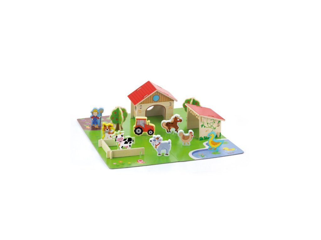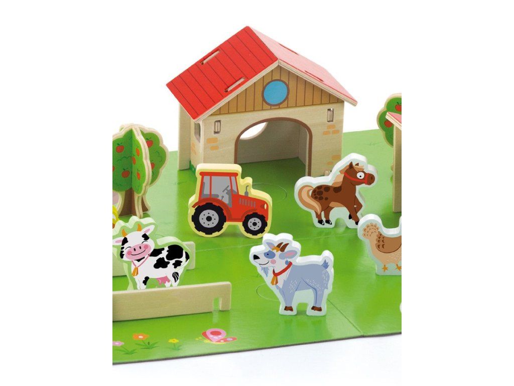 Detské drevené 3D puzzle Viga Farma. Toto puzzle, premení deti na malých farmárov, ktoré si vytvoria svoju malú farmičku. Dozvie sa tiež, ako vyzerá život na vidieku a ako ťažká je práca farmára. Balenie obsahuje 30 častí. Určené pre deti od 36 mesiacov. Puzzle pre Vaše malé deti, má veľmi výrazné farby, jednoduchý dizajn a veľké dieliky. Našou prioritou je bezpečnosť a kvalita našich výrobkov, a preto farby použité na hračkách nie sú toxické a spĺňajú bezpečnostné štandardy (EN71 a ASTM). Hračka je vhodná aj ako krásny darček pre našich najmenších. Balenie obsahuje:- drevená doska