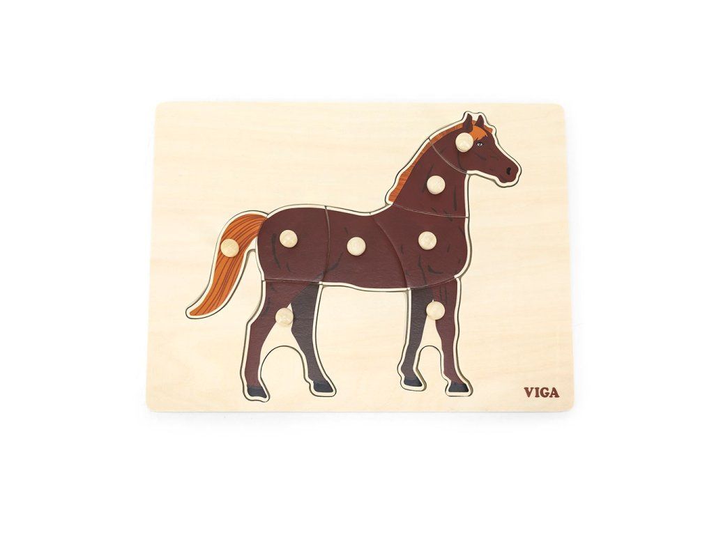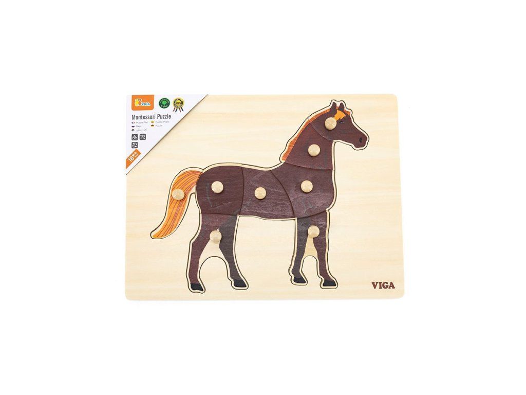 Detské drevené puzzle s úchytmi Montessori Viga Koník - 52039