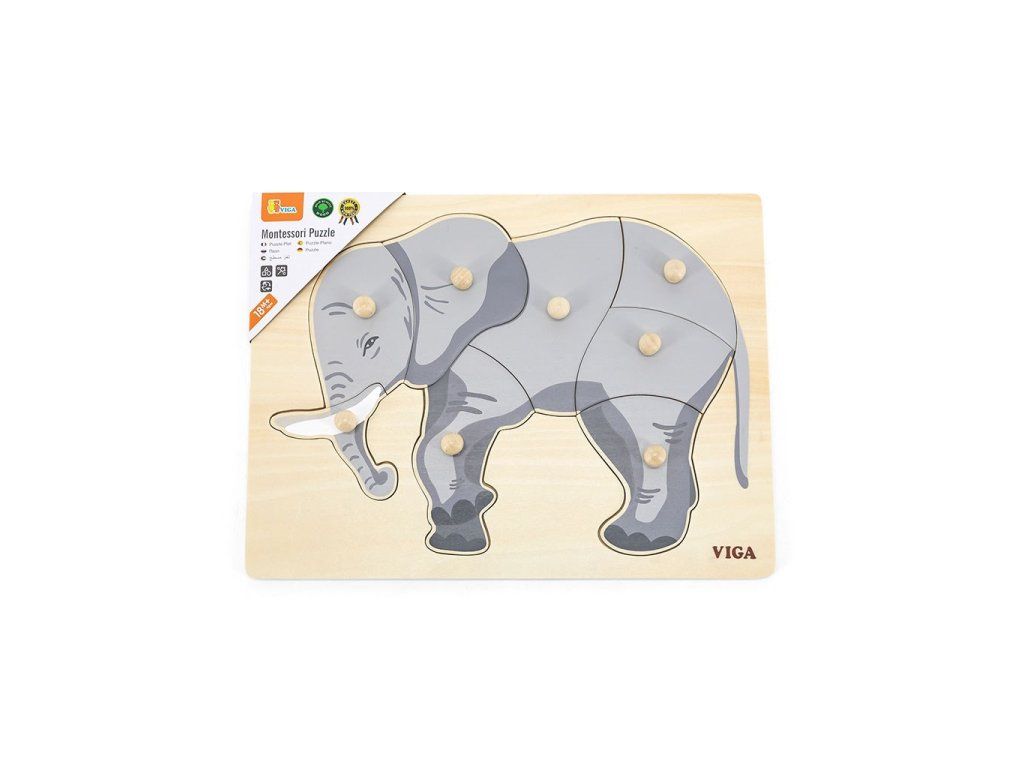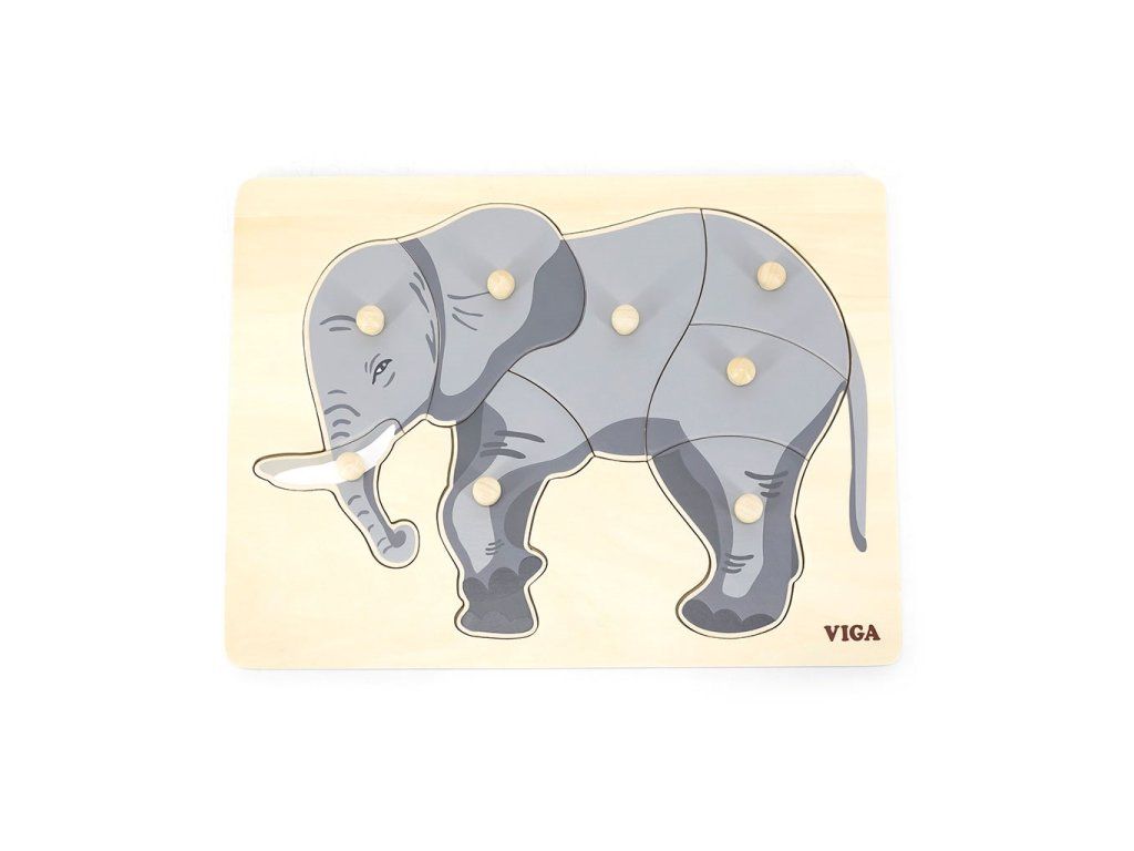 Detské drevené puzzle s úchytmi Montessori Viga Slon - 52034