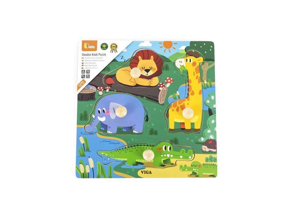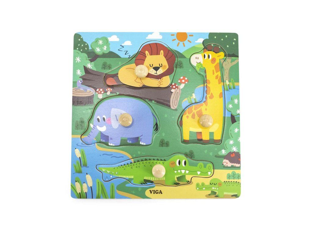 Detské drevené puzzle s úchytmi Viga Divoké zvieratá 4 ks - 52031