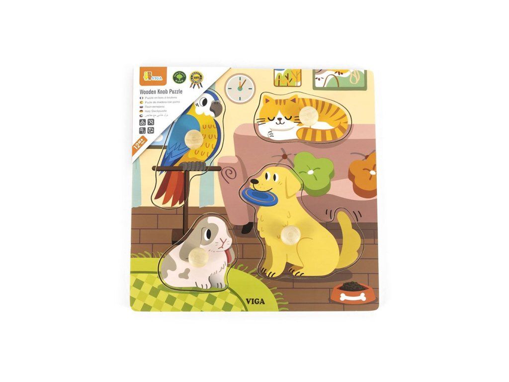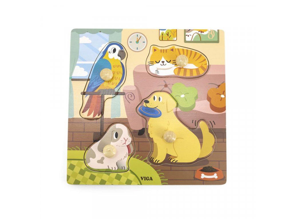 Detské drevené puzzle s úchytmi Viga Domáci miláčikovia 4 ks - 52032