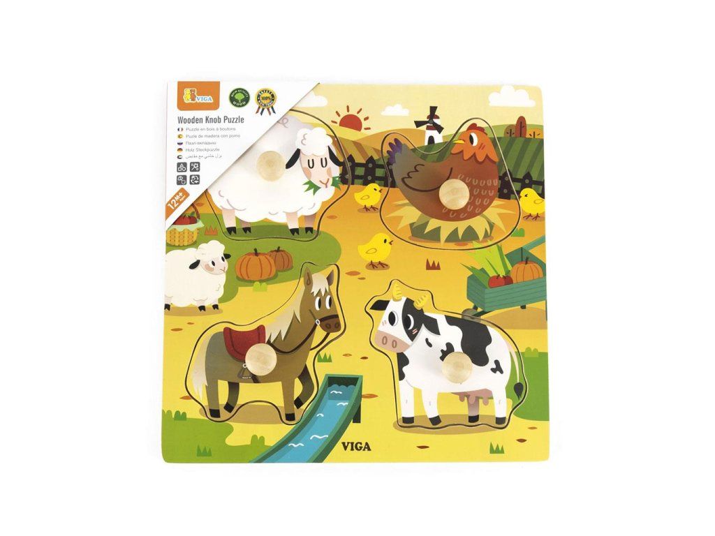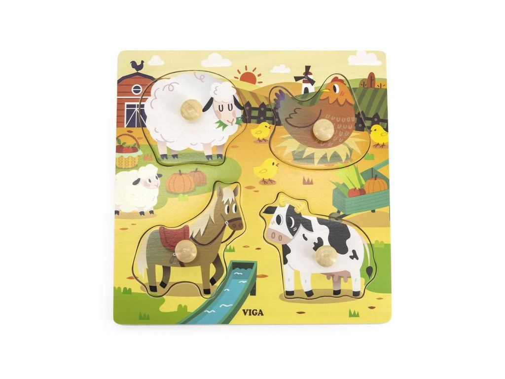 Detské drevené puzzle s úchytmi Viga Farma 4 ks - 52029