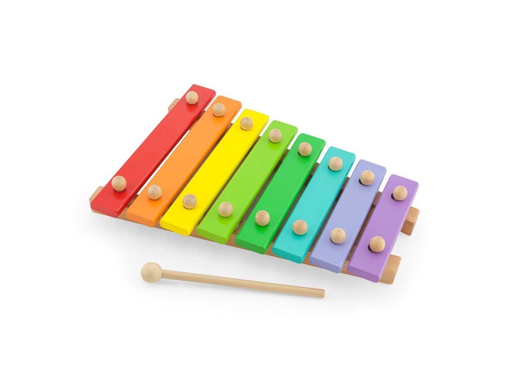 Farebný drevený xylofón je ideálnou hračkou pre začínajúcich hudobníkov.