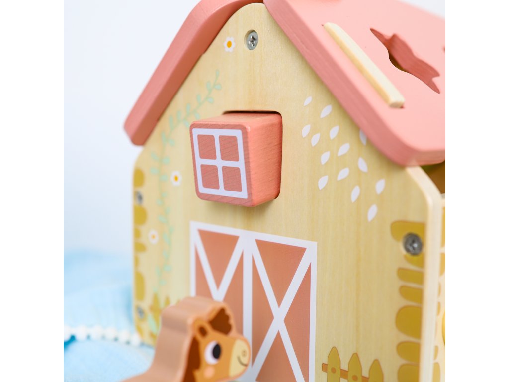 Domček farma Vkladačka Pastel Drevený domček a vkladačka v jednom Originálna drevená farma s vkladačkou od Tooky Toy s nadčasových pastelových farbách je skvelou multifunkčnou hračkou pre každé batoľa. Okrem domčeka sa totiž v balení nachádza 10 rôznych tvarov či zvieratiek, ktoré deti vkladajú do otvorov v domčeku. Strechu domčeka je možné zložiť, takže sa deti ľahko dostanú dovnútra. Domček slúži aj ako kulisa na detské hry nielen na farmu so zvieratkami, ale môžu ho doplniť ďalšími figúrkami, autíčkami a ďalšími drobnými hračkami. Domček sa dá ľahko prenášať.Vhodný už pre deti od 18 mesiacov Farma s vkladačkou je jedinečnou drevenou hračkou pre rozvoj batoliat. Rozvíja jemnú motoriku, logické myslenie a podporuje koordináciu ruka-oko. Deti sa tiež učia rozpoznávať tvary a atraktívny vzhľad hračky ich motivuje k voľnej hre a vymýšľaniu vlastných príbehov. Hračka je vyrobená z pevného dreva z udržateľného lesníctva, natretá netoxickými farbami a pre deti je bezpečná.Dodatočné parametre