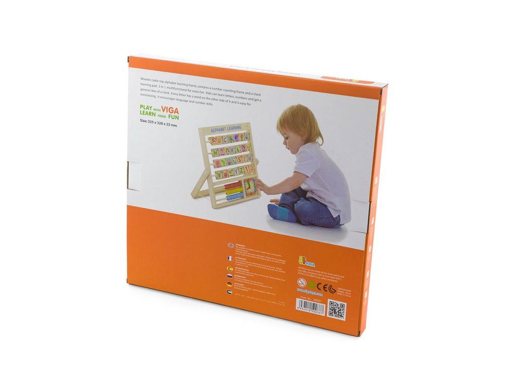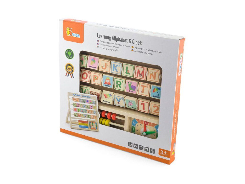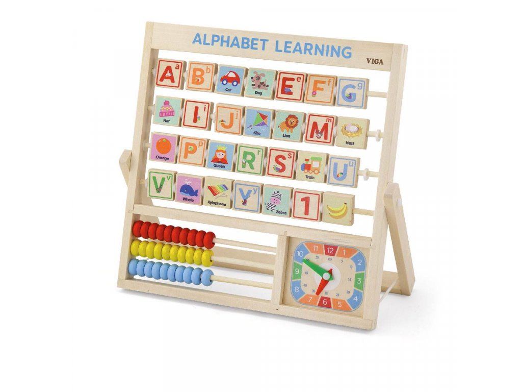 Tabuľa pripomínajúca počítadlo s abecednými blokmi. Každá z kociek abecedy má na zadnej strane obrázok zodpovedajúci písmenu v angličtine. V spodnej časti dosky hračky sa nachádza malé počítadlo, na ktorom sa dieťa naučí počítať, sčítať a odčítať do 30.
