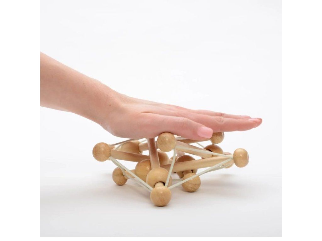 - základom sú starostlivo opracované tyčky z kaučukového dreva prepojené pružnými gumičkami