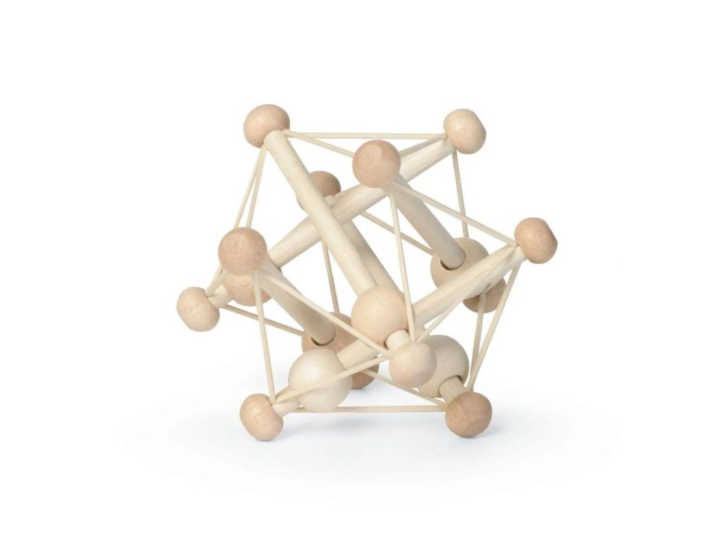 - drevená hrkálka v jemných, prírodných farbách