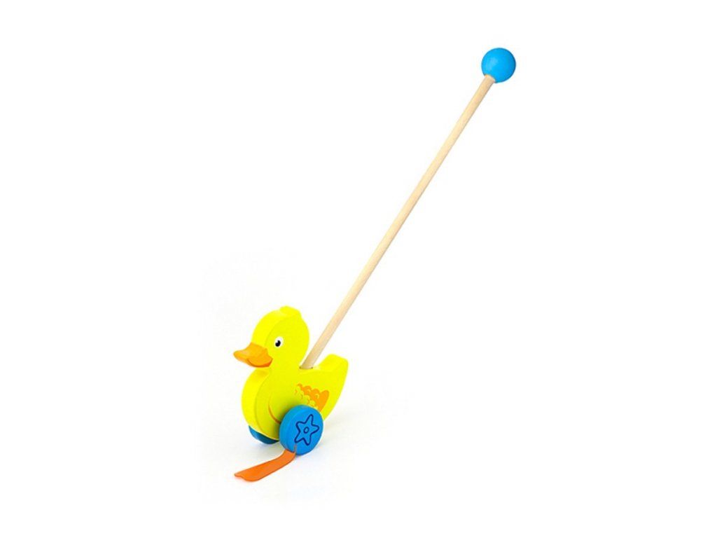 Krásna drevená hračka na tyči Viga kačička je skvelou alternatívou ťahacích hračiek pre deti. Perfektná edukačná hračka. Ideálna na spoločné prechádzky a hranie doma. Gumové prvky pripojené na kolesá vtipným spôsobom napodobňujú chôdzu zvierat. Hračka pomáha zlepšiť manuálnu zručnosť a obratnosť, učí dieťa rozpoznať tvary a farby, zapája a rozvíja zmysel pre pozorovanie. Hračka je vyrobená z lakovaného dreva. Našou prioritou je bezpečnosť a kvalita našich výrobkov, a preto farby použité na hračkách nie sú toxické a spĺňajú bezpečnostné štandardy (EN71 a ASTM). Rozmery hračky: dxvxš 15x8,3x5,6 cm. Určené pre deti od 2 rokov.Dodatočné parametre