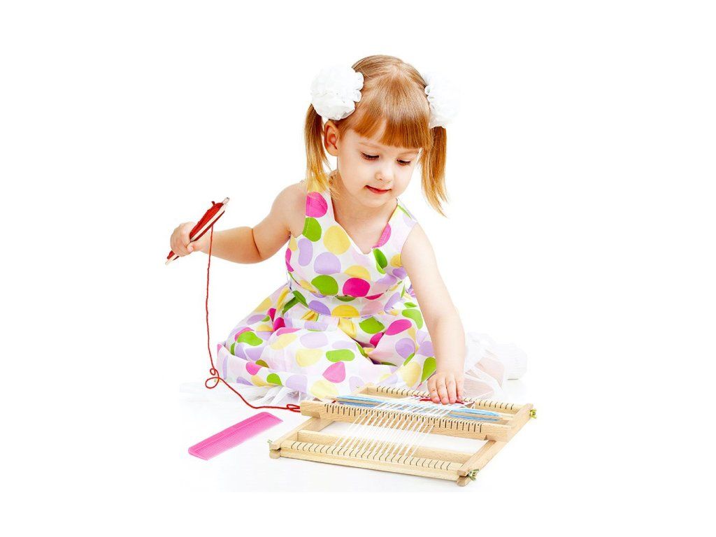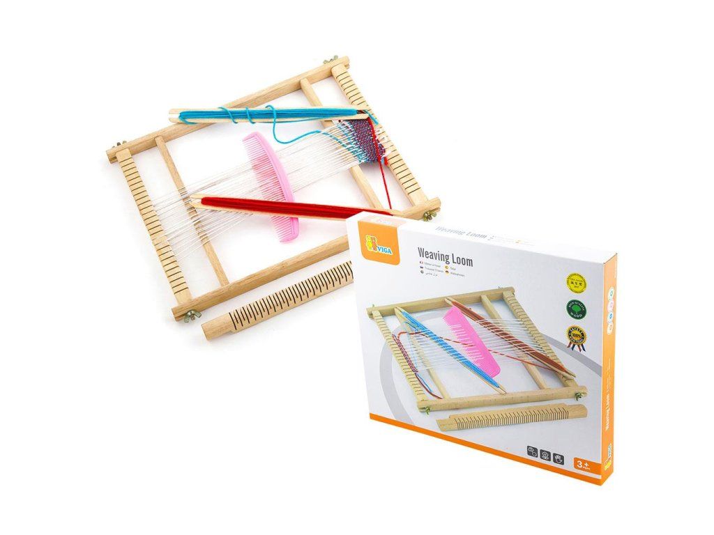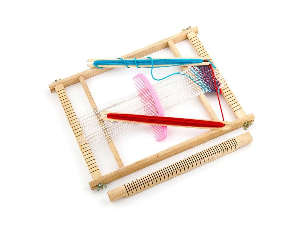 Drevené ručné krosná, na ktorých si dieťa môže vytvoriť vlastnú látku.