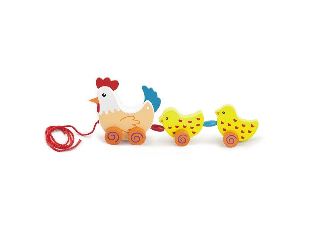 Drevená ťahacia hračka na šnúrke Viga Sliepky - 52176