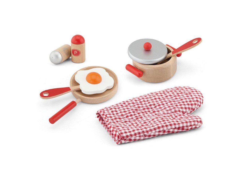 Bezpečná a kreatívna raňajková súprava od spoločnosti Viga je ideálnou hračkou na stimuláciu detskej predstavivosti. Malé gazdinky často rady pomáhajú svojim rodičom v kuchyni, takže teraz budú môcť samy pripravovať jedlo. Červená farba je pre dievčatko ideálna a doplní kuchynské vybavenie našej malej kuchárky.
