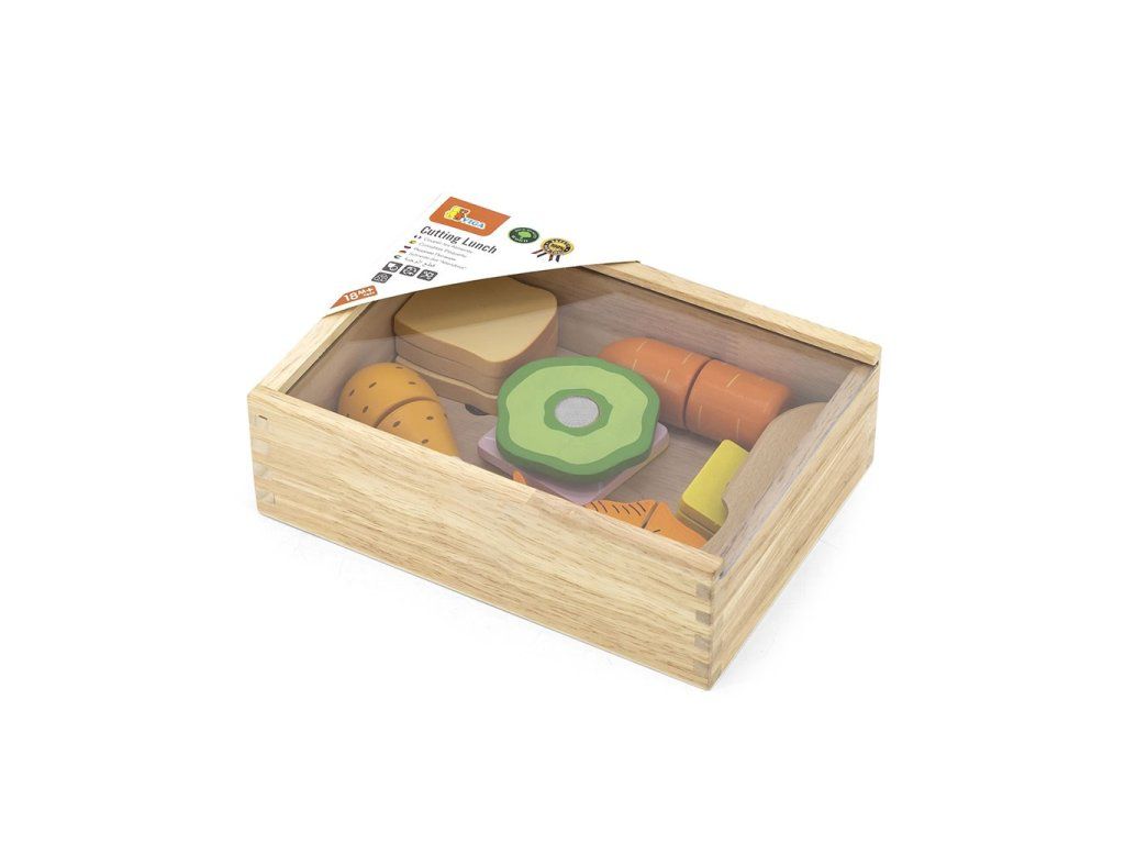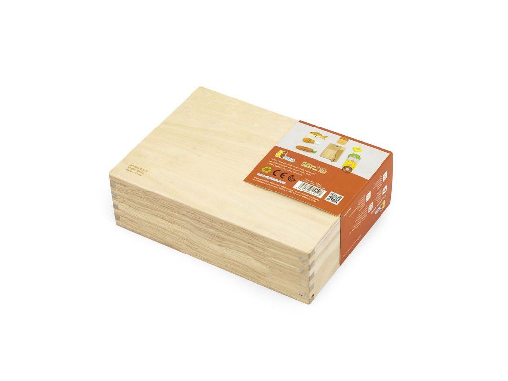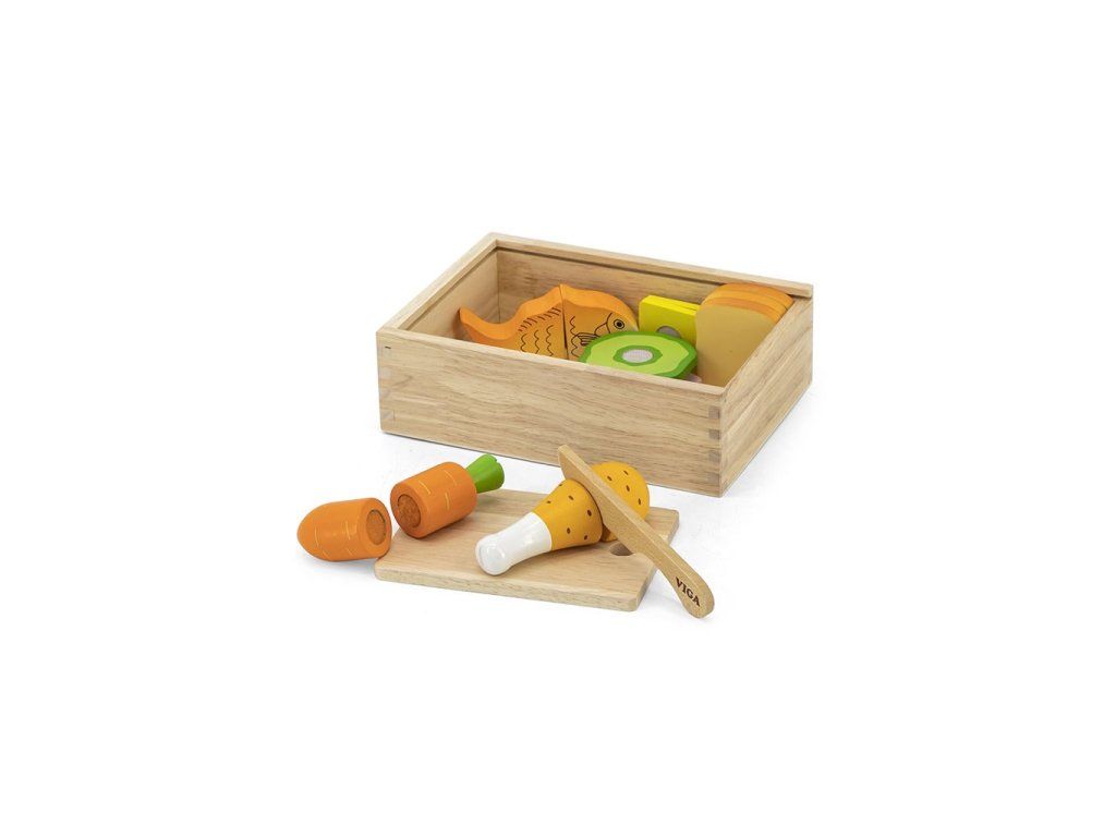 Drevená súprava na varenie od spoločnosti Viga je vynikajúcou hračkou na rozvoj kulinárskych a manuálnych zručností vášho dieťaťa. Súprava obsahuje dosku na krájanie a nôž, takže vaše dieťa pochopí, ako krájať potraviny na kúsky, a zároveň si rozvíja koordináciu ruka-oko. Každá časť potravín má suchý zips na jednoduché zostavenie a oddelenie.