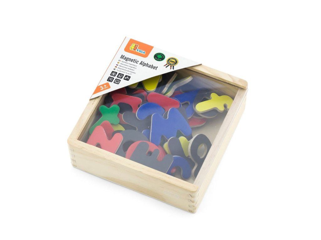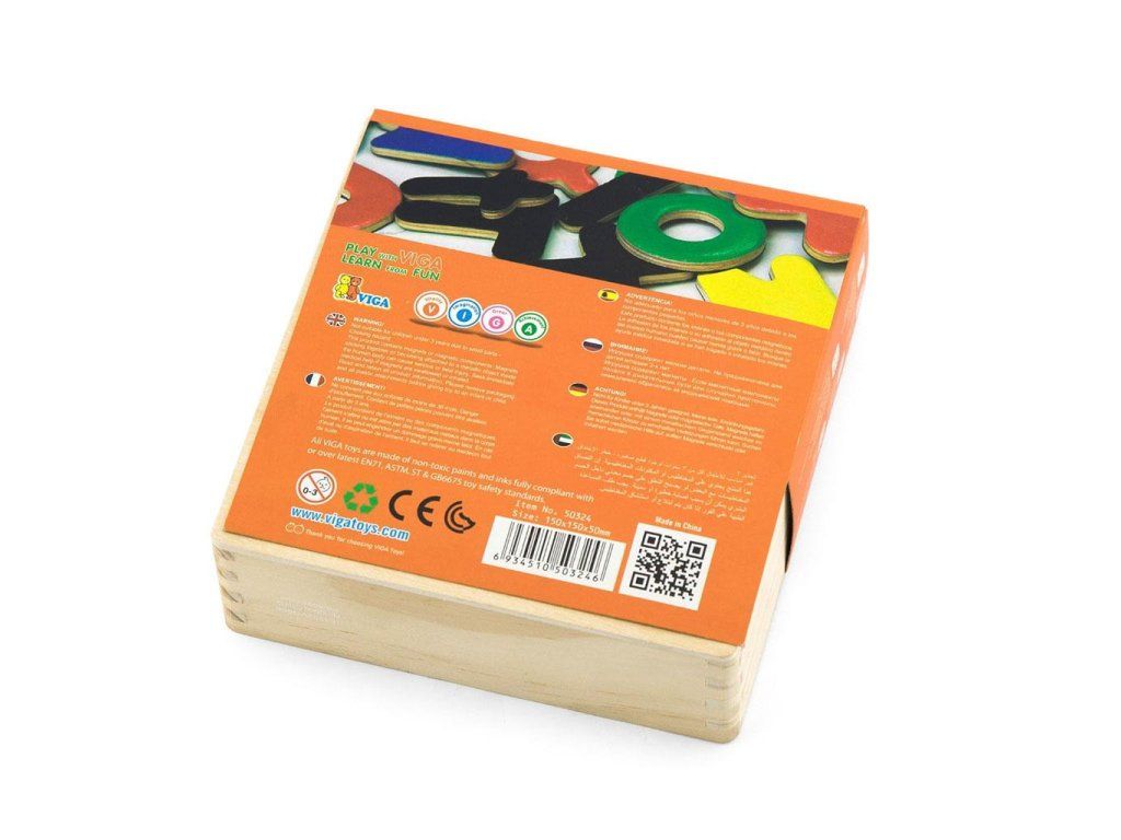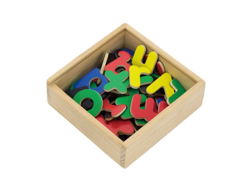 Magnetické písmenká sú zabalené v estetickej drevenej škatuľke s priehľadným akrylovým okienkom na jednoduché skladovanie a sú ideálne ako darček.