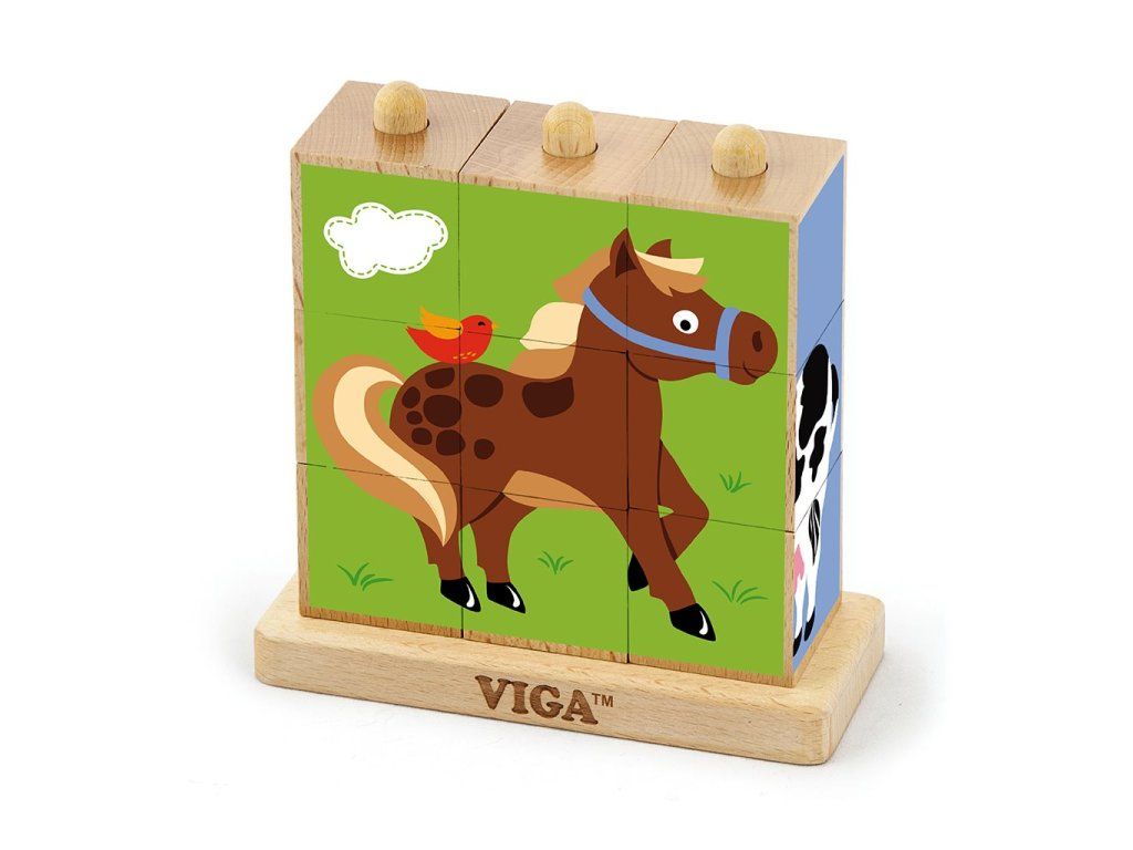 Drevené kocky Viga pre najmenších staviteľov s veselými obrázkami. Poskladajte drevené zvieratká na podstavec. Počet možných kombinácií zaručuje veľa zábavy a navyše naučí vaše dieťa ako zladiť vzory, poznávať tvary a zároveň zlepšovať svoju zručnosť. Takisto sa vďaka tejto hračke dieťa naučí jednoduchému poznávaniu a tiež počítať. Puzzle sa skladá z 9 drevených kociek umiestnených na stojane. Hračka pomáha zlepšiť manuálnu zručnosť a obratnosť, učí dieťa rozpoznať tvary a farby, zapája a rozvíja zmysel pre pozorovanie. Hračka je vyrobená z lakovaného dreva. Našou prioritou je bezpečnosť a kvalita našich výrobkov, a preto farby použité na hračkách nie sú toxické a spĺňajú bezpečnostné štandardy (EN71 a ASTM). Pre deti od 2 rokov. Hračka je vhodná ako krásny darček pre našich najmenších. P>