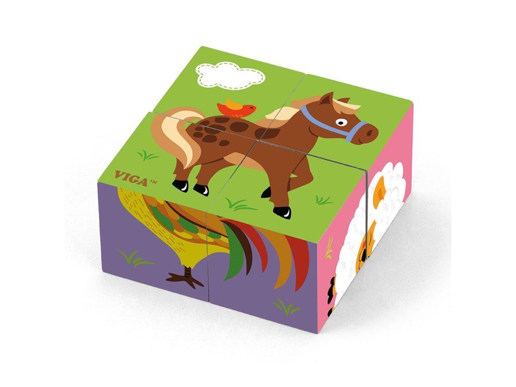 Drevené puzzle kocky pre najmenších Viga Farma - 48551