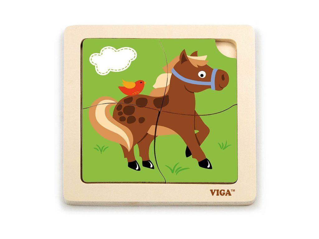 Drevené puzzle pre najmenších Viga 4 ks Koník - 48571