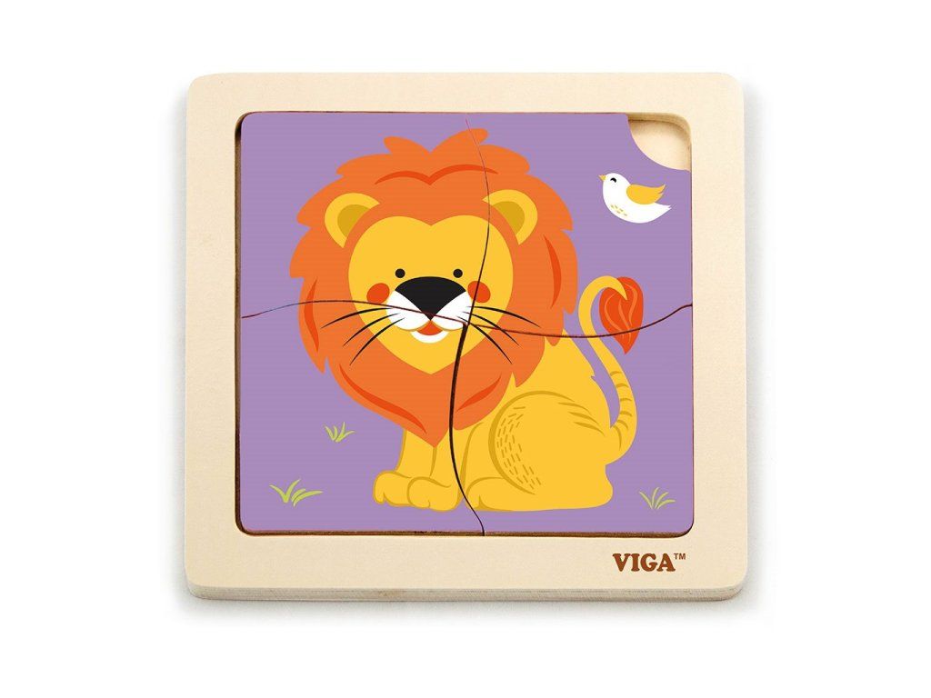 Drevené puzzle pre najmenších Viga 4 ks Lev - 48574