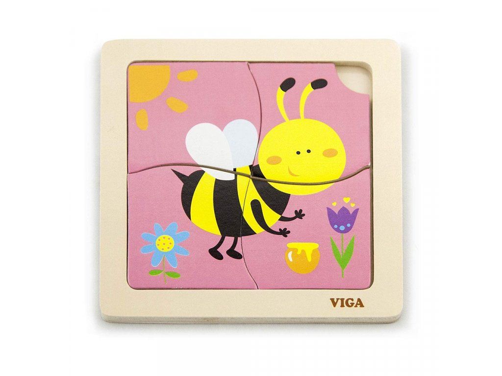 Drevené puzzle pre najmenších Viga 4 ks Včielka - 48565