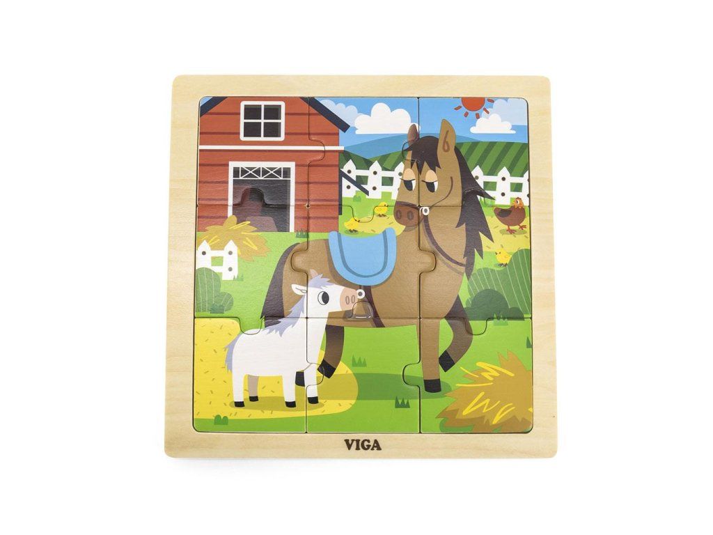 Drevené puzzle pre najmenších Viga 9 ks Koníky - 52041
